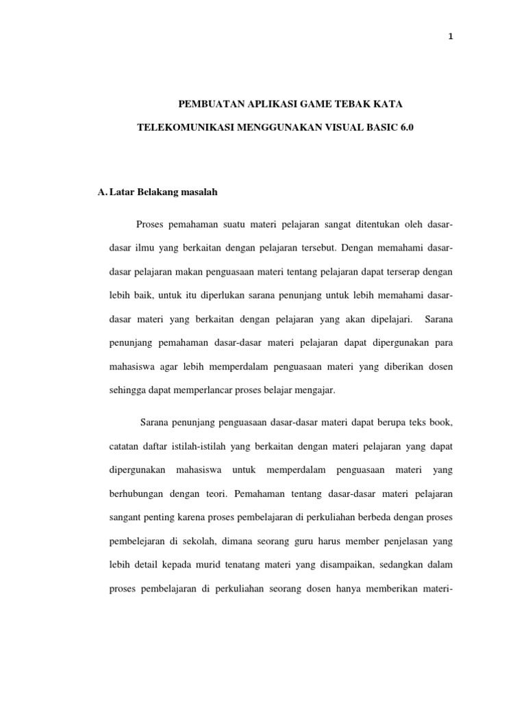 Contoh Skripsi Bab I Aplikasi Game Tebak Angka Bola Jaring